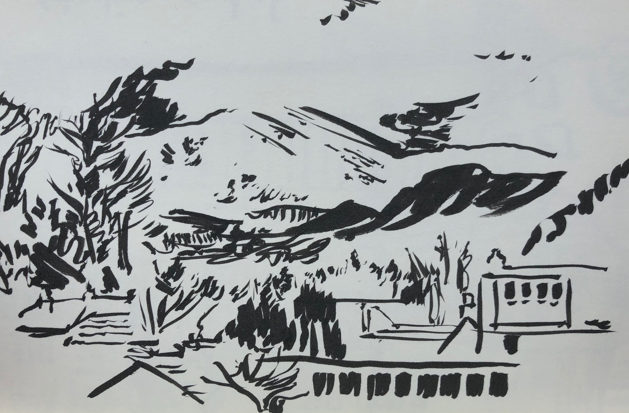 These reflections begin and end with sketches of Ben Ledi – the mountain that rises above the far end of Callander, and the view from my B&B window, and its constant dialogue with the weather and surroundings. I had intended to leave immediately after breakfast, but I wanted to catch the mist, and the sense of something there, and not there [fig.2].
